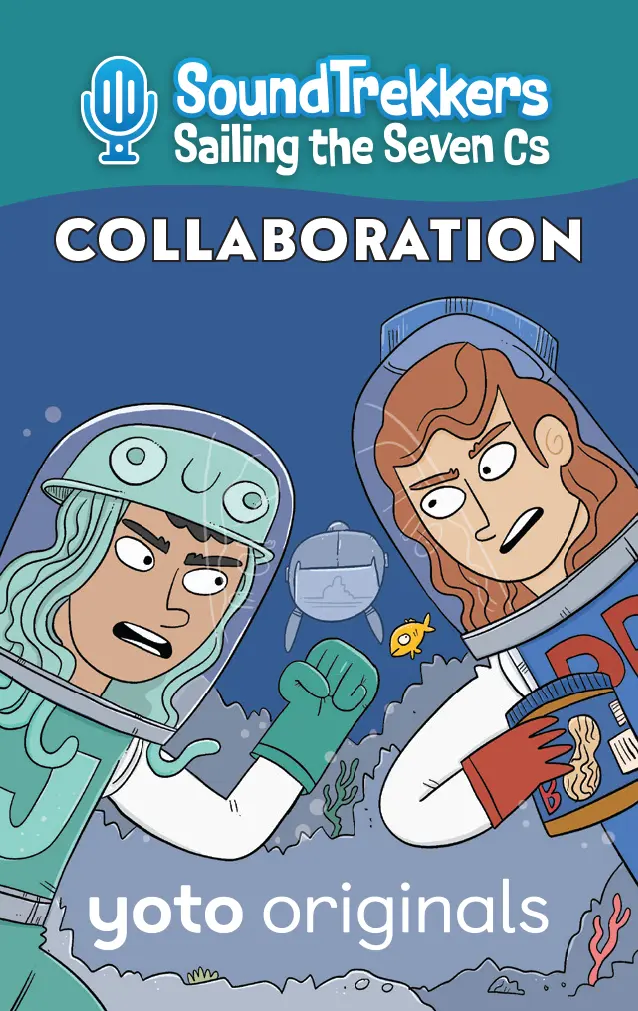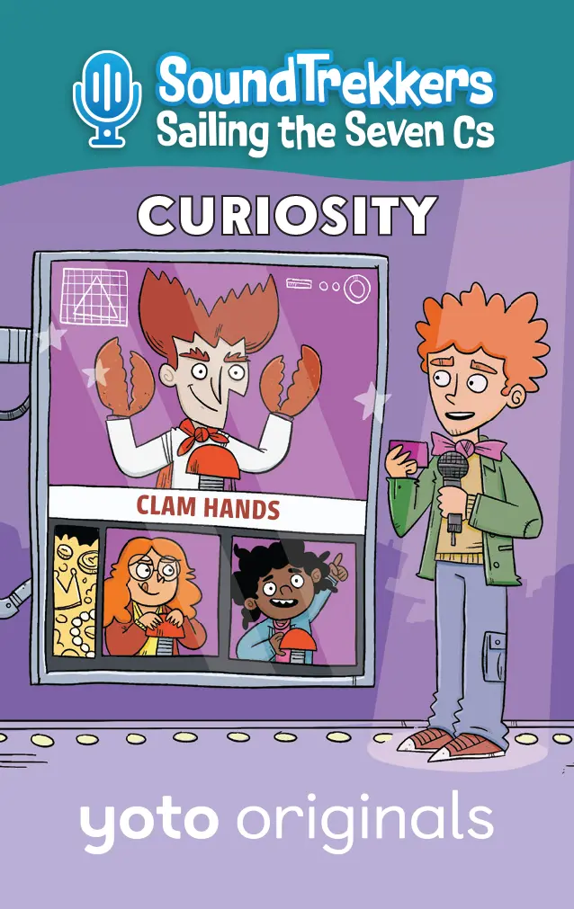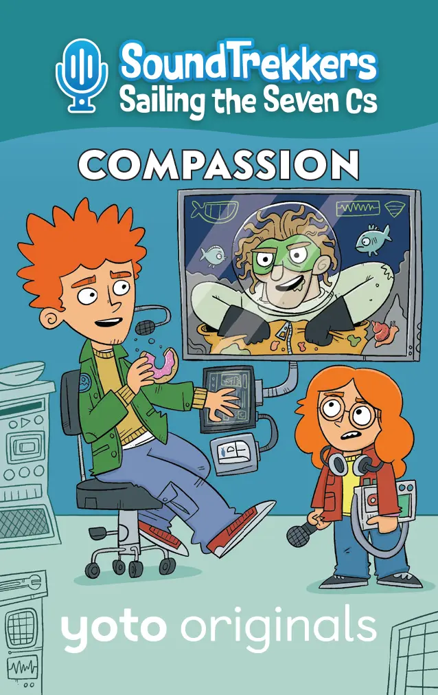 Yoto Says: If there??s commotion in the ocean, seaweed in need, or something amiss in the abyss, the SoundTrekkers will save the day! What do you call it when a girl, her best friend, her almost-grown-up older brother, and a computer called Pickles travel the globe in an enormous whale-shaped submarine, capture the ocean??s most interesting sounds, and post them onto the greatest podcast that ever lived ?? all while thwarting a league of zany undersea villains who are determined to destroy the world??s most precious natural resources just for the fun of it? Why, Soundtrekkers, of course! Join Molly, Jojo, and JP as they sail the seven seas, all while learning about the 7 Cs: Creativity, Compassion, Curiosity, Communication, Collaboration, Community, and Critical Thinking. The Cs help the Soundtrekkers foil the plans of some wacky supervillains, who could all use a lesson in how to live harmoniously with those around them, and protect ?? not wreck! ?? the natural world we all share. This pack includes: Card 1: Creativity – Soothing Sounds After the Soundtrekkers successfully record the gentle popping sound of water flowing through the Great Barrier Reef, they suddenly hear a loud CRACK! coming through their underwater mic. Oh no! It??s nefarious villain Show Tuna (the ocean??s most overly dramatic, compulsively performing theater nerd who disguises herself as a tuna and ??speaks?? exclusively in show tunes) breaking off pieces of the reef to use as set pieces for an upcoming show! When the Seven Cs Solver app suggests CREATIVITY as a solution, the Soundtrekkers comes up with a clever way to save the reef and give Show Tuna the performance of a lifetime! Card 2: Compassion – Snapping Shrimp The Soundtrekkers head to the Indian Ocean to record the loud sound the Snapping Shrimp??s claws make, but after recording a sample, they suddenly overhear something distressing on their mic. It??s the horrible sea bully Sea Cucumber Jones, an oversized lug who sports a sea cucumber costume. He is hurling insults at a tiny shrimp. ??Hey you little shrimp!?? ??Get back here, shrimp!?? ??What are you shrimp? Chicken???? When his bullying spreads to other small marine life, the Soundtrekkers consult the Seven Cs Solver app, which suggests COMPASSION as a way to help. In the end, the crew learns that when Sea Cucumber Jones was just a junior villain, he too was a victim of bullying. All the blundering bad guy really needs is a bit of tender love and attention in order to cut out the sheigans. Card 3: Curiosity – The Bermuda Triangle The Soundtrekkers pick up on the ghostly sounds of creaking and groaning, and head to the Bermuda Triangle to investigate. When they arrive, they record the sounds of a sunken wooden sailing ship, but after gathering what they need, the crew hears some destructive crashing sounds coming from inside the ship. As it turns out, it??s the muddling menace Clam Hands, an otherwise ordinary dude with clams for hands turning the sunken ship upside-down in search of treasure! When the Seven Cs Solver app suggests CURIOSITY, the Soundtrekkers invite Clam Hands to play a game to convince him that maybe there??s a better place to go treasure hunting! Card 4: Communication – Funny Noises The Soundtrekkers head to the Florida Keys to record the sound the silly whistling and clicking noises made by Bottlenose Dolphins ?? they sound just like humans giggling! After they get what they need for their podcast, they are confronted by hapless bad guy Cuckoo Clownfish, the ocean??s most unfunny clown who, despite his best efforts, is simply miserable at making anyone laugh. In fact, Cuckoo is tearing out precious sea grass from the ocean floor to entertain himself! The Seven Cs Solver app suggests COMMUNICATION as a way out of the predicament. The Soundtrekkers must show Cuckoo that destroying the ocean is NOT funny ?? but maybe telling jokes is! Card 5: Collaboration – The Bloop The Soundtrekkers head to the South Pacific Ocean to capture the powerful, low-frequency sound of the world-famous Bloop, which has mystified scientists for decades. Once they record the one-of-a-kind sound, they accidentally pick up the sound of an argument between PEANUT BUTTER and JELLYFISH – two of the most bumbling blunderbusses under the sea! Soon, their fight devolves into the each of them acting out more and more destructive examples of just how bad they can be! The Soundtrekkers consult the Seven Cs Solver app, which suggests COLLABORATION. Molly, Jojo, and JP make waves in helping the brawling buffoons come together ?C as a semi-functioning, but still ridiculous unit. Card 6: Community – For the Birds The Soundtrekkers are excited to head to the Coastal Cliffs of the Shetland Islands to record the chorus of squawks and caws of its Atlantic Puffins, Razorbills, and Guillemots. But on their way back home, they overhear some thuds coming from the ocean floor. The crew follows the sound and discovers Blue Tang Shoe, an over-the top sporty bad guy who wears a pair of squeaky sneakers designed to resemble Blue Tang Fish. Blue Tang Shoe is trying to kick a ball, but is mostly just kicking the helpless sea urchins who are in his path across the sandy ground! The Seven Cs Solver offers COMMUNITY as a way to stop him, and the Soundtrekker crew must come up with a way for Blue Tang Shoe to learn to play nicely with others! Card 7: Critical Thinking – Flounder Pounder The Soundtrekkers are amazed to learn that Haddock, a type of fish in the North Sea, create drumming sounds by vibrating their swim bladders! They immediately head out to capture the sounds for the latest episode of Soundtrek, but when they arrive, their mic pics up a different sound. Upon investigation, they discover the most brutish and reckless of all villains, Flounder Pounder, who uses an oversized rubber flounder to create destruction in her wake. When she threatens to use her fake fish to pulverize the Soundtrekkers sub, they consult the Se
