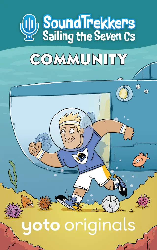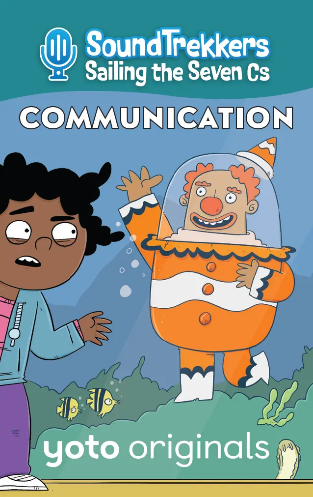 Yoto Says: If there??s commotion in the ocean, seaweed in need, or something amiss in the abyss, the SoundTrekkers will save the day! What do you call it when a girl, her best friend, her almost-grown-up older brother, and a computer called Pickles travel the globe in an enormous whale-shaped submarine, capture the ocean??s most interesting sounds, and post them onto the greatest podcast that ever lived ?? all while thwarting a league of zany undersea villains who are determined to destroy the world??s most precious natural resources just for the fun of it? Why, Soundtrekkers, of course! Join Molly, Jojo, and JP as they sail the seven seas, all while learning about the 7 Cs: Creativity, Compassion, Curiosity, Communication, Collaboration, Community, and Critical Thinking. The Cs help the Soundtrekkers foil the plans of some wacky supervillains, who could all use a lesson in how to live harmoniously with those around them, and protect ?? not wreck! ?? the natural world we all share. This pack includes: Card 1: Creativity – Soothing Sounds After the Soundtrekkers successfully record the gentle popping sound of water flowing through the Great Barrier Reef, they suddenly hear a loud CRACK! coming through their underwater mic. Oh no! It??s nefarious villain Show Tuna (the ocean??s most overly dramatic, compulsively performing theater nerd who disguises herself as a tuna and ??speaks?? exclusively in show tunes) breaking off pieces of the reef to use as set pieces for an upcoming show! When the Seven Cs Solver app suggests CREATIVITY as a solution, the Soundtrekkers comes up with a clever way to save the reef and give Show Tuna the performance of a lifetime! Card 2: Compassion – Snapping Shrimp The Soundtrekkers head to the Indian Ocean to record the loud sound the Snapping Shrimp??s claws make, but after recording a sample, they suddenly overhear something distressing on their mic. It??s the horrible sea bully Sea Cucumber Jones, an oversized lug who sports a sea cucumber costume. He is hurling insults at a tiny shrimp. ??Hey you little shrimp!?? ??Get back here, shrimp!?? ??What are you shrimp? Chicken???? When his bullying spreads to other small marine life, the Soundtrekkers consult the Seven Cs Solver app, which suggests COMPASSION as a way to help. In the end, the crew learns that when Sea Cucumber Jones was just a junior villain, he too was a victim of bullying. All the blundering bad guy really needs is a bit of tender love and attention in order to cut out the sheigans. Card 3: Curiosity – The Bermuda Triangle The Soundtrekkers pick up on the ghostly sounds of creaking and groaning, and head to the Bermuda Triangle to investigate. When they arrive, they record the sounds of a sunken wooden sailing ship, but after gathering what they need, the crew hears some destructive crashing sounds coming from inside the ship. As it turns out, it??s the muddling menace Clam Hands, an otherwise ordinary dude with clams for hands turning the sunken ship upside-down in search of treasure! When the Seven Cs Solver app suggests CURIOSITY, the Soundtrekkers invite Clam Hands to play a game to convince him that maybe there??s a better place to go treasure hunting! Card 4: Communication – Funny Noises The Soundtrekkers head to the Florida Keys to record the sound the silly whistling and clicking noises made by Bottlenose Dolphins ?? they sound just like humans giggling! After they get what they need for their podcast, they are confronted by hapless bad guy Cuckoo Clownfish, the ocean??s most unfunny clown who, despite his best efforts, is simply miserable at making anyone laugh. In fact, Cuckoo is tearing out precious sea grass from the ocean floor to entertain himself! The Seven Cs Solver app suggests COMMUNICATION as a way out of the predicament. The Soundtrekkers must show Cuckoo that destroying the ocean is NOT funny ?? but maybe telling jokes is! Card 5: Collaboration – The Bloop The Soundtrekkers head to the South Pacific Ocean to capture the powerful, low-frequency sound of the world-famous Bloop, which has mystified scientists for decades. Once they record the one-of-a-kind sound, they accidentally pick up the sound of an argument between PEANUT BUTTER and JELLYFISH – two of the most bumbling blunderbusses under the sea! Soon, their fight devolves into the each of them acting out more and more destructive examples of just how bad they can be! The Soundtrekkers consult the Seven Cs Solver app, which suggests COLLABORATION. Molly, Jojo, and JP make waves in helping the brawling buffoons come together ?C as a semi-functioning, but still ridiculous unit. Card 6: Community – For the Birds The Soundtrekkers are excited to head to the Coastal Cliffs of the Shetland Islands to record the chorus of squawks and caws of its Atlantic Puffins, Razorbills, and Guillemots. But on their way back home, they overhear some thuds coming from the ocean floor. The crew follows the sound and discovers Blue Tang Shoe, an over-the top sporty bad guy who wears a pair of squeaky sneakers designed to resemble Blue Tang Fish. Blue Tang Shoe is trying to kick a ball, but is mostly just kicking the helpless sea urchins who are in his path across the sandy ground! The Seven Cs Solver offers COMMUNITY as a way to stop him, and the Soundtrekker crew must come up with a way for Blue Tang Shoe to learn to play nicely with others! Card 7: Critical Thinking – Flounder Pounder The Soundtrekkers are amazed to learn that Haddock, a type of fish in the North Sea, create drumming sounds by vibrating their swim bladders! They immediately head out to capture the sounds for the latest episode of Soundtrek, but when they arrive, their mic pics up a different sound. Upon investigation, they discover the most brutish and reckless of all villains, Flounder Pounder, who uses an oversized rubber flounder to create destruction in her wake. When she threatens to use her fake fish to pulverize the Soundtrekkers sub, they consult the Se