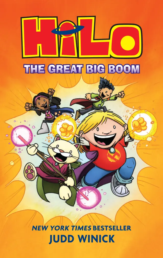 Yoto Says: A robot falls from the sky and makes some big, silly waves??underwear school days included. Hilo and his friends are in for wild battles, weird creatures, and a whole lot of fun. It??s a big adventure with an even bigger heart. Get ready for an action-packed, laugh-out-loud adventure in this New York Times best-selling graphic novel series that??s perfect for Dog Man and Big Nate fans! Join Hilo, a space boy who crash-lands on Earth with no memory of where he came from, and his friends D.J. and Gina as they uncover secrets, battle bizarre creatures, and navigate epic challenges??all while learning the true power of friendship. In the first book, Hilo??s unexpected arrival on Earth shakes up D.J. and Gina??s ordinary lives. While Hilo hilariously tries to fit in??think underwear-only school days??he discovers he might not be the only thing that fell from the sky. Together, the trio must figure out Hilo??s past and face the occasional mutant space robot. As the adventure continues, strange portals begin opening across town, bringing a host of wild creatures, from giant mutant chickens to Viking hippos and killer vegetables. Hilo, D.J., and Gina must act fast to send these creatures back to their worlds before they wreak havoc on Earth. But the stakes get even higher when Gina is pulled into one of those mysterious portals. Hilo and D.J. refuse to let her disappear without a fight! Their journey through magical worlds is filled with danger, surprises, and a powerful reminder that sometimes, the most unexpected heroes save the day. Packed with humor, heart, and wild surprises, this collection is a must-listen for fans of epic adventures and unforgettable friendships!